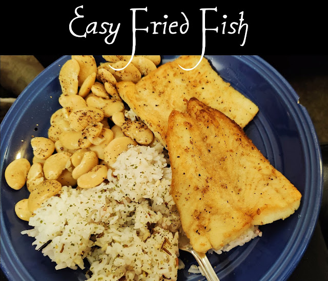 The fish needs to be not frozen. Skin can be removed if desired. use whatever kind of fish you like. Pat fish dry using paper towels. Sprinkle with salt & pepper, then flour. Spread flour over the entire surface. Flip the fish pieces over and repeat. Shake excess flour off.